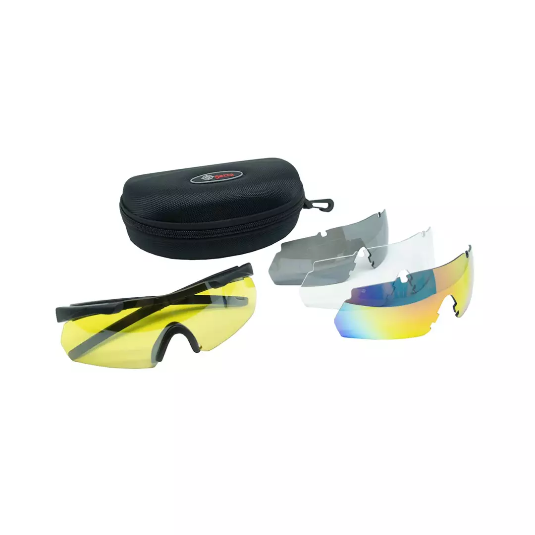 Ampujanlasit neljällä vaihdettavalla linssillä. Soveltuvat hyvin ampumiseen, metsästykseen, työhön tai aurinkolaseiksi.