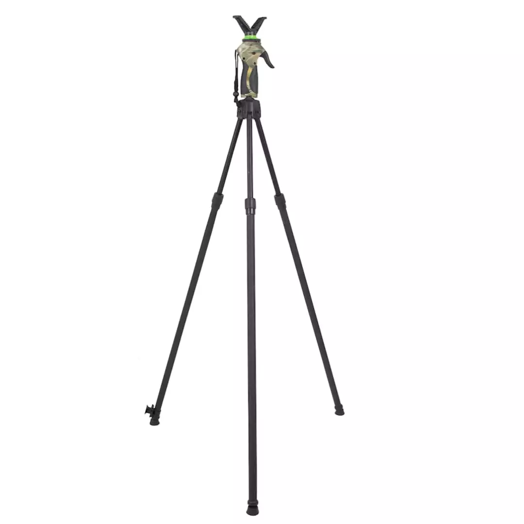 Teleskooppinen ampumatuki, jonka korkeutta säädetään nopeasti ja turvallisesti kevyellä painalluksella kahvan liipaisimesta. Tarjoaa turvallisemman ja nopeamman ammunnan kaikissa tilanteissa.
