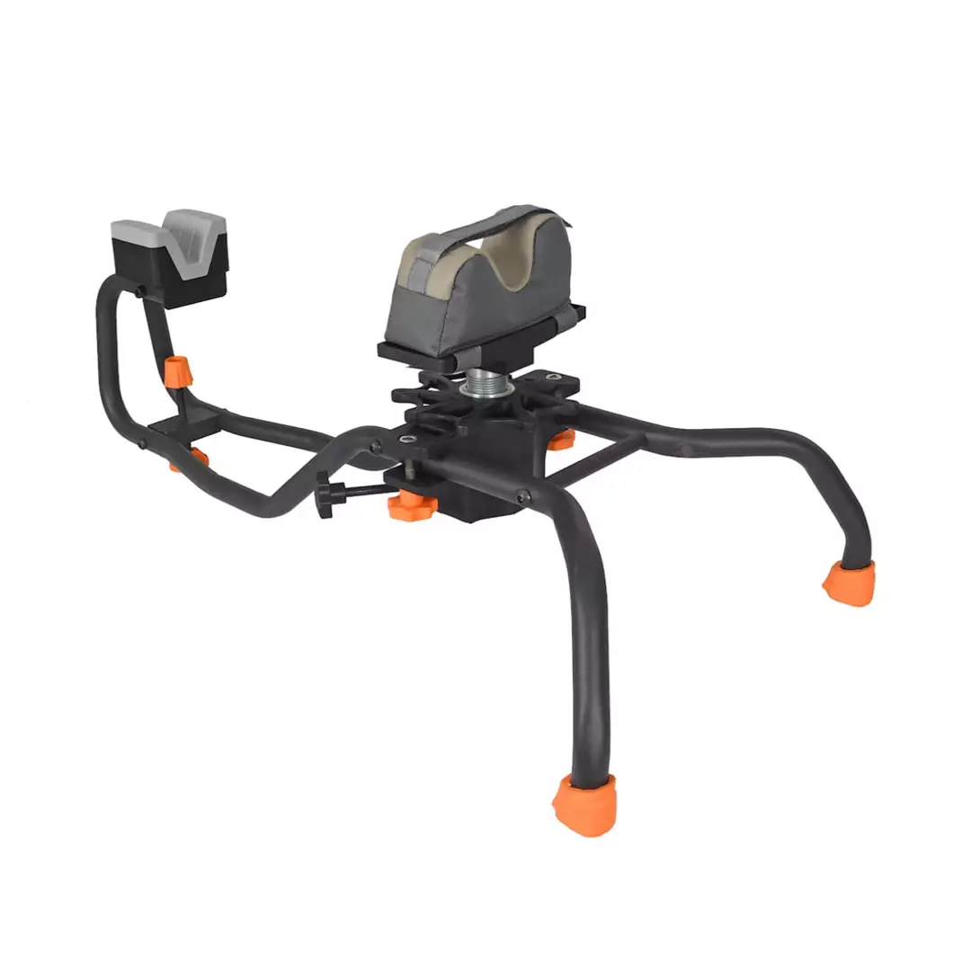 Vakaa ampumatuki portaattomalla korkeudensäädöllä. Etutuki on säädettävissä pituussuunnassa. Helppo koota. Sopii oikealta ja vasemmalta ampuvalle