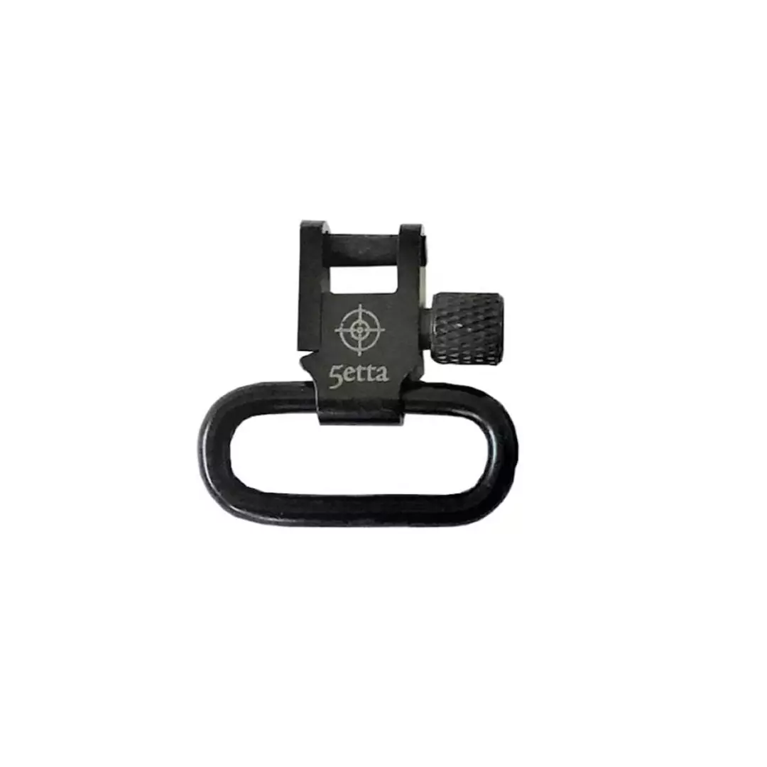 Hihnalenkin kiinnike, jossa on pikakiinnitys sopien Blaser-aseisiin. Huomaa, että tappi on 3 mm, hieman ohuempi, joten ne eivät sovi vakiohihnalenkkisetin kanssa.
