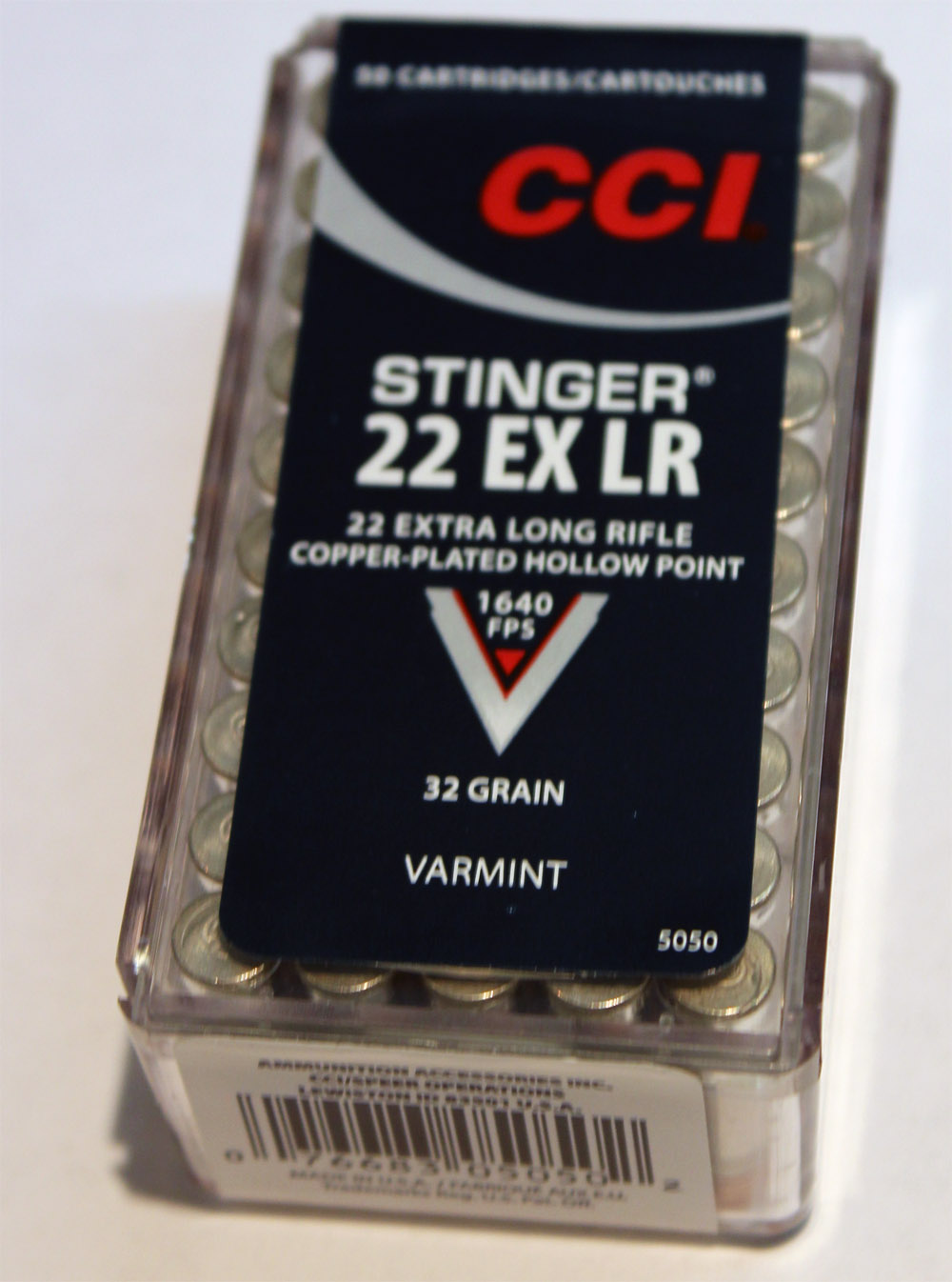 CCI Stinger 2,08g .22 EX LR 50kpl todella nopea pienoiskiväärin patruuna. Lähtönopeus 499m/s. 2,08g painavalla reikäpääluodilla.