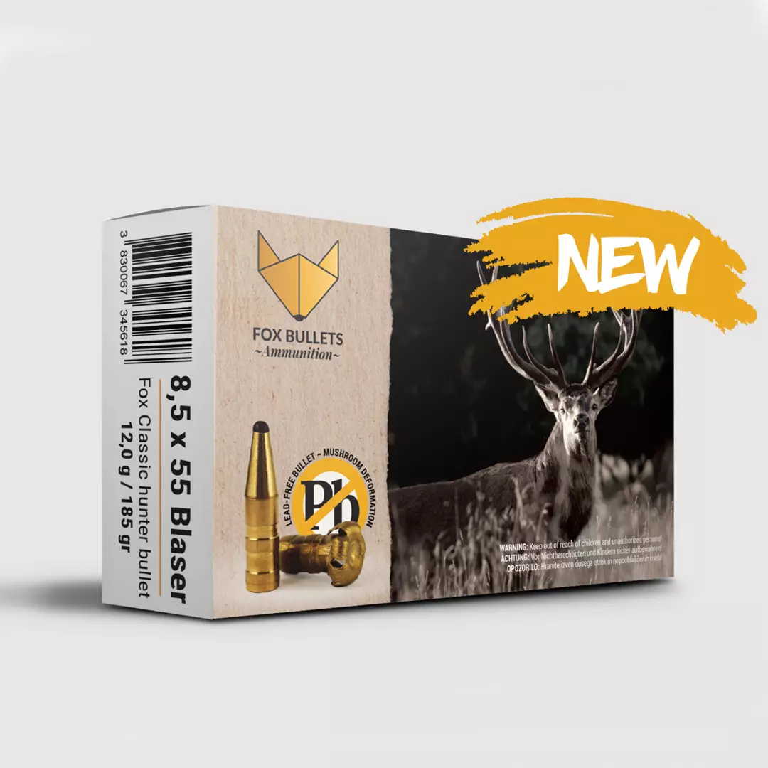Fox Ammunition 8.5x55 Blaser on huippuluokan metsästyspatruuna, joka on ladattu lyijyttömällä Fox Classic Hunter -luodilla. Tämä moderni kaliiperi tarjoaa erinomaisen ballistisen suorituskyvyn ja tehon, joka riittää mainiosti kaikelle eurooppalaiselle suurriistalle, kuten hirvelle ja villisialle.