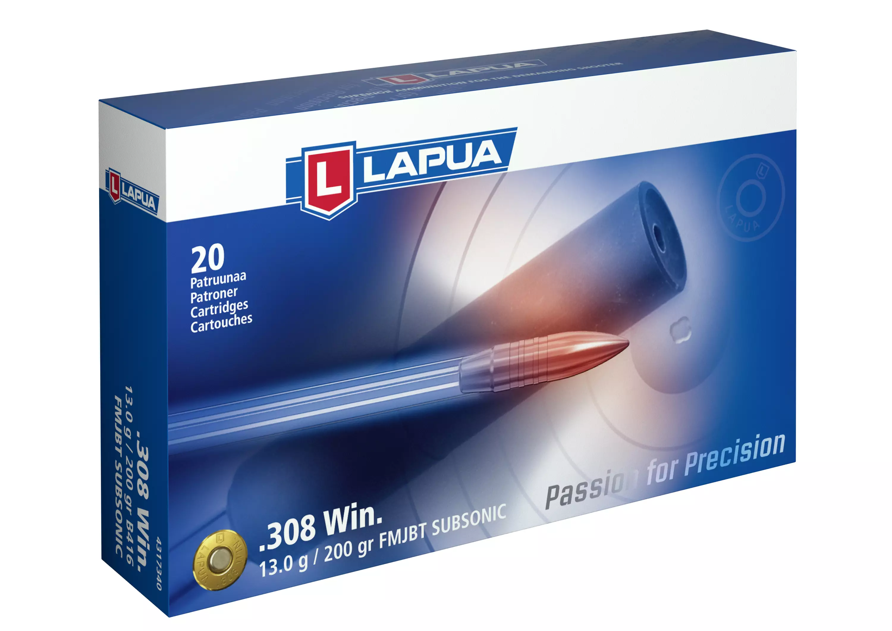 Lapua FMJBT Subsonic .308win 13,0g 20kpl, kiväärinpatruuna