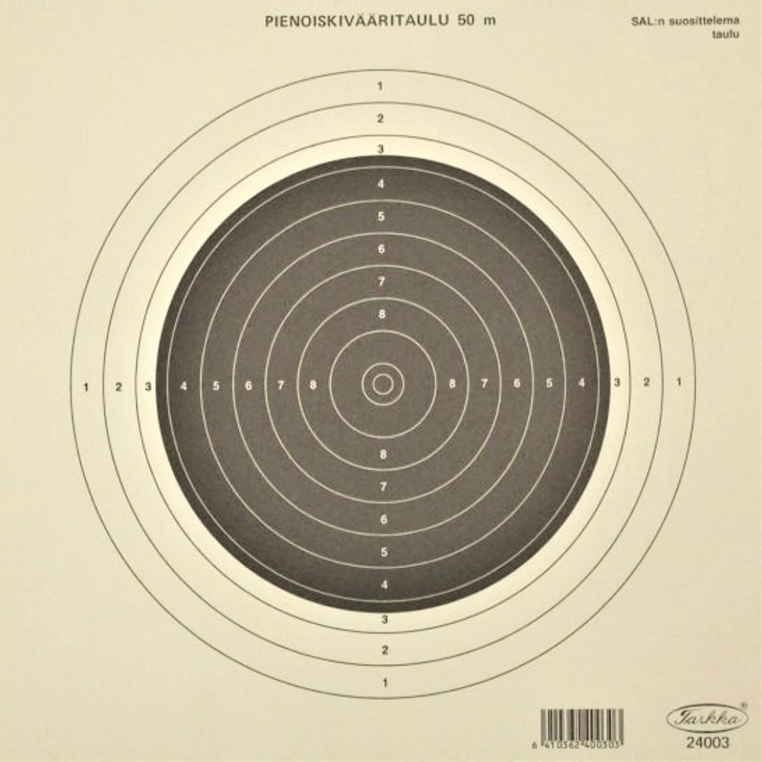 Tarkka Pienoiskivääritaulu 3 20x20cm, 50 kpl Edullinen maalitaulu pienoiskivääriammuntaan. SAL:n suosittelema pienoiskivääritaulu.