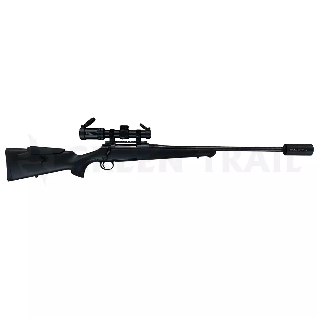 Sauer 100 kiväärin pohjalle rakennettu ajojahtipaketti, suositussa 308win kaliiperissa.