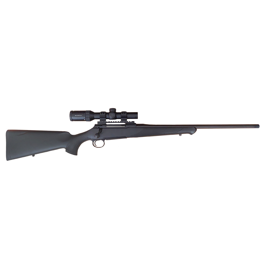 Kiikaritähtäimenä paketissa on Vector Optics Continental 1-6x24 G4 SFP. Laajanäkökenttä ja valopiste helpottavat laukauksen ampumista haastavissa tilanteissa. Paketissa on mukana picatinnykisko johon kiikari kiinnittyy X-Accu:n kiikarinjaloilla.