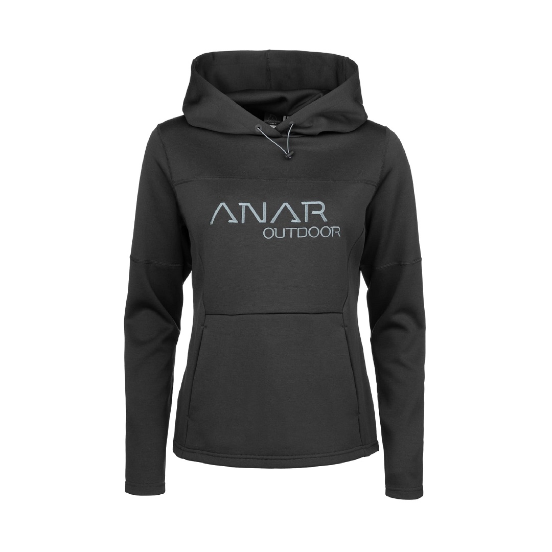 Anar Galda on laadukas naisten huppari kaikkeen ulkoiluun ja vapaa-aikaan. Huppari on valmistettu teknisestä materiaalista, joustava ja hengittävä kangas pitää olosi mukavana. Edessä suuri kengurutasku, jonka sisäpuoli on harjattua trikoota. Tilava huppu on kaksinkertaista materiaalia, joustava säätönyöri muovisella narulukolla. Brodeeratut Anar-logot.