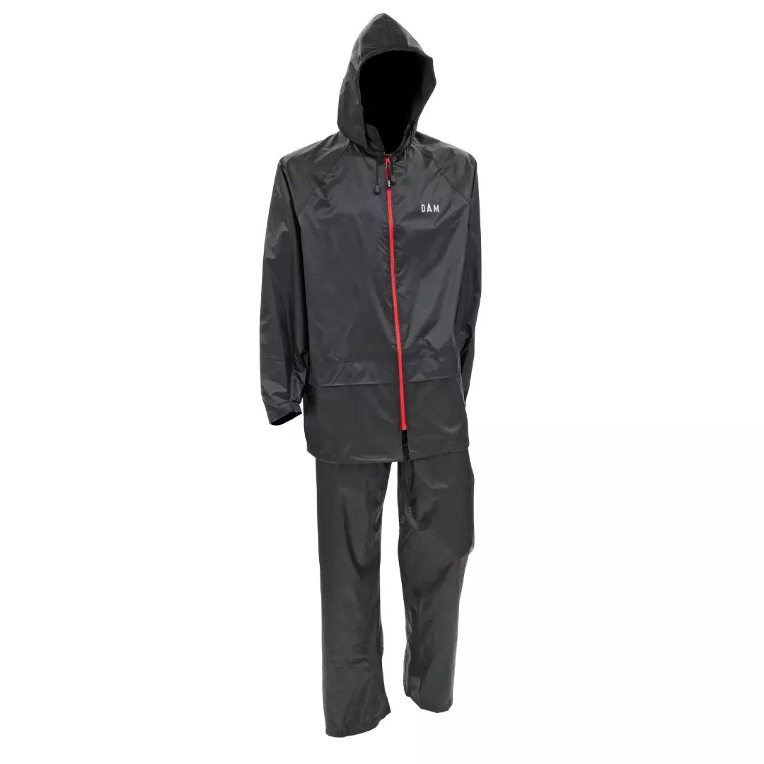 DAM Protec Rainsuit on kevyt kaksiosainen sadeasupuku, joka on valmistettu erittäin kestävästä polyesterin ja PVC:n sekoituksesta. Puku on täysin vedenpitävä, ja sen kaikki saumat on teipattu varmistamaan, että pysyt kuivana kovimmallakin sateella. Toiminnallisuutta lisäävät säädettävä huppu, jonka voi tarvittaessa rullata kauluksen sisään piiloon, sekä vahva päävetoketju.