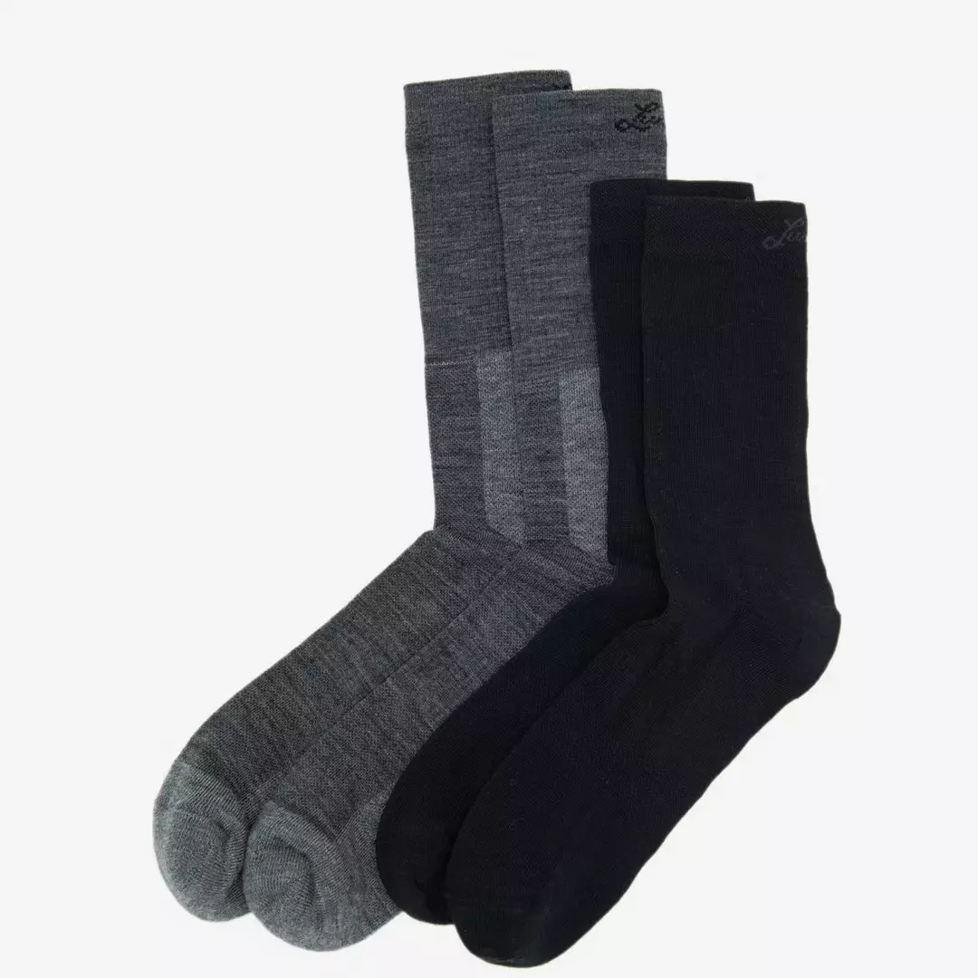 Kaksikerroksinen sukkayhdistelmä, joka tarjoaa parhaan mahdollisen mukavuuden ja tuen Lundhagsin shell-kenkiin. Pakkaus sisältää Merino Liner Sock -alus- ja Merino Trekking Sock Mid -päällissukat.