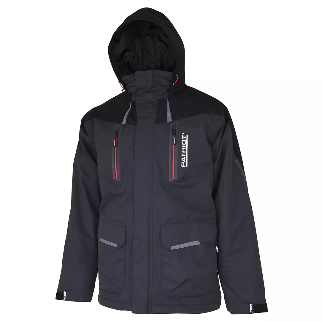 Patriot HeatGuard Thermo on miellyttävän kevyt ja tekninen takki talvikäyttöön sekä kevään ja syksyn viileämmille säille. Kestävistä ja nykyaikaisista materiaaleista valmistetussa takissa on todella kevyt untuvamainen lämpövuori sekä ainutlaatuinen, lämpöä takaisinheijastava Thermo Block -sisävuori. Thermo Block sisävuori mahdollistaa myös hieman ohuemman toppauksen, koska vuori heijastaa tehokkaasti kehon omaa lämpöä takin sisäpuolella ja samalla se heijastaa kylmää ilmaa poispäin. Hengittävä sekä tuulen- ja vedenpitävä (8000mm) ulkokangas on valmistettu erittäin vahvaa ja repeytymistä estävää Rip-Stop rakennetta hyödyntäen. Takin ulkopuoli on myös käsitelty vettä ja likaa hylkivällä DWR (Durable Water Repellent) pinnoitteella.