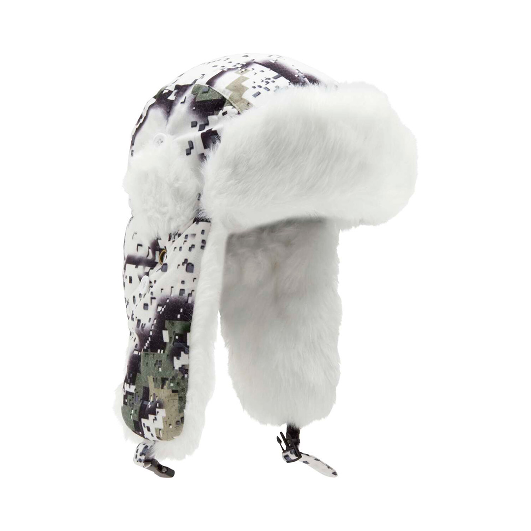 Karvalakki, jossa ainutlaatuinen DESOLVE® naamiointikuvio. Kiinnityshihnat leuan alla ja korvien kohdalla läpälliset "kuunteluaukot". Lakki vuorattu kokonaisuudessaan todella lämpimällä keinoturkiksella.