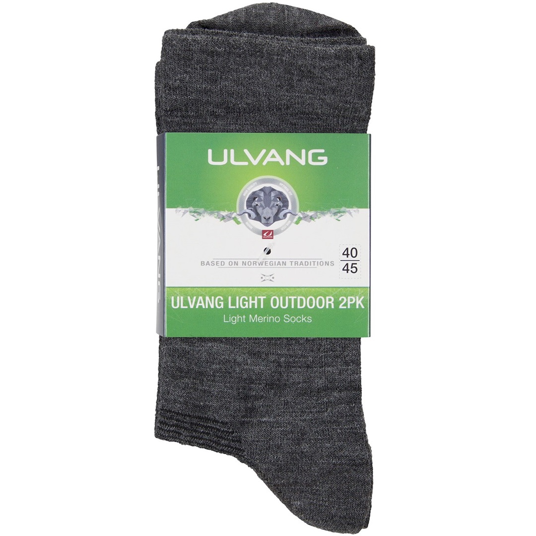 Ulvang Light Outdoor 2pk -sukat Ulvang Light on ohut, mutta silti lämmin villasukka jokapäiväiseen käyttöön. Light on pehmeä ja mukava, ja siinä on lisävahvistus varpaissa ja kantapäässä.... Lue lisää