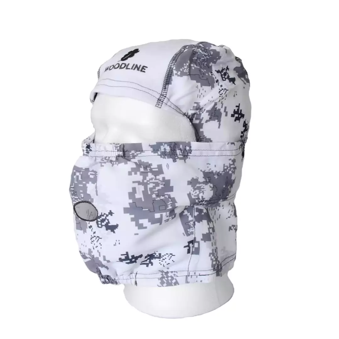 Ohut ja joustava täysin peittävä huppu/balaclava/kasvonaamio, joka peittää ja naamioi pään ja kasvosi valkoisena vuodenaikana. Suunniteltu metsästykseen osittain tai kokonaan lumen peittämillä alueilla. Valmistettu samasta naamiosta ja materiaalista kuin Woodline Akka Snow Camo Set.