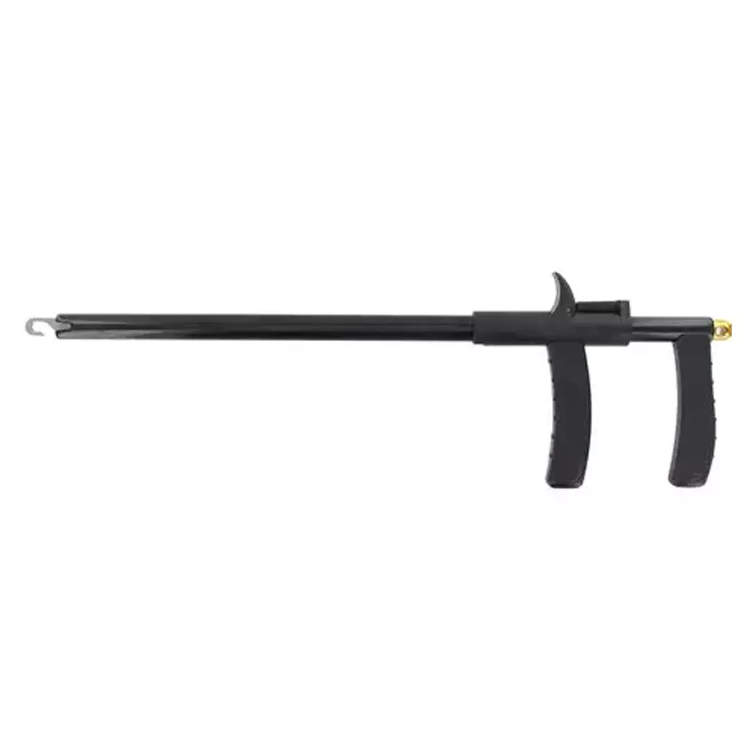 Jykevä koukunirroitin, jossa metallinen runko ja muoviset kahvat. Pihdeissä on läpivienti narulle.