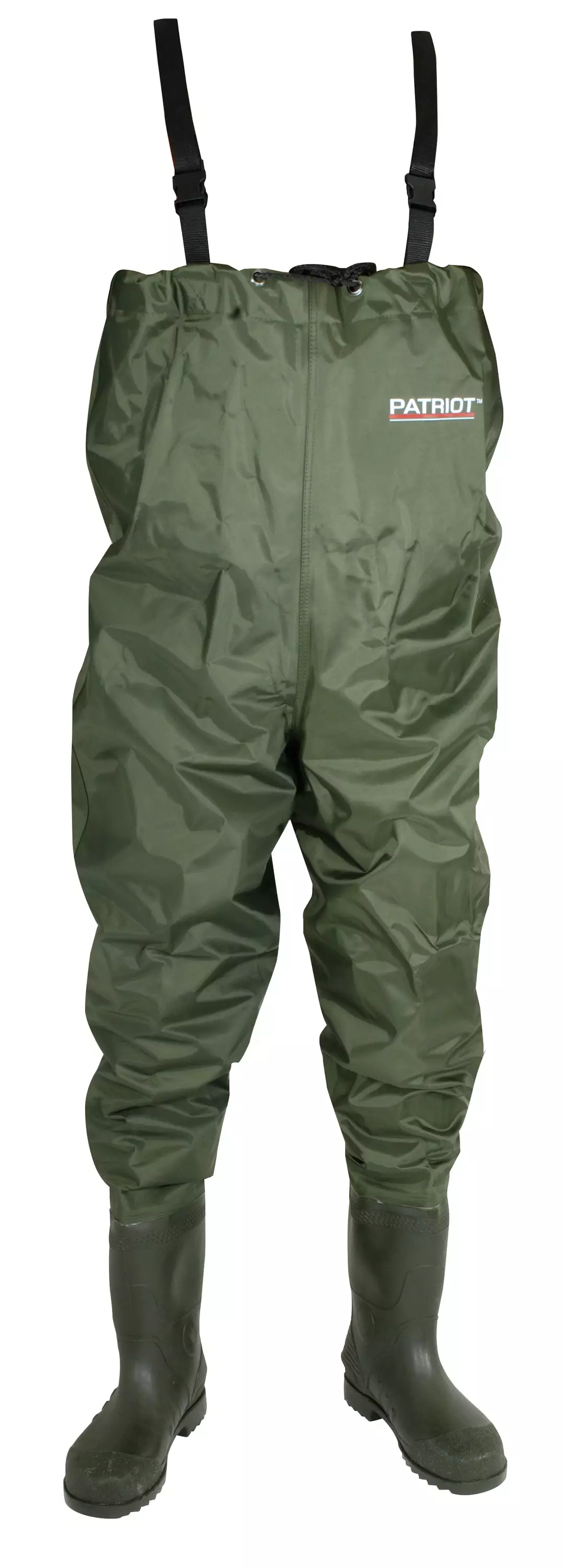 Patriot Kahluuhousut, Vihreä vedenpitävät kahluuhousut kaikenlaiseen kalastukseen. Sopivat hyvin myös laiturinasennuksiin. Saappaat on valmistettu vedenpitävästä ja kulutusta kestävästä 70 denierin Nylon/PVC -yhdisteestä.