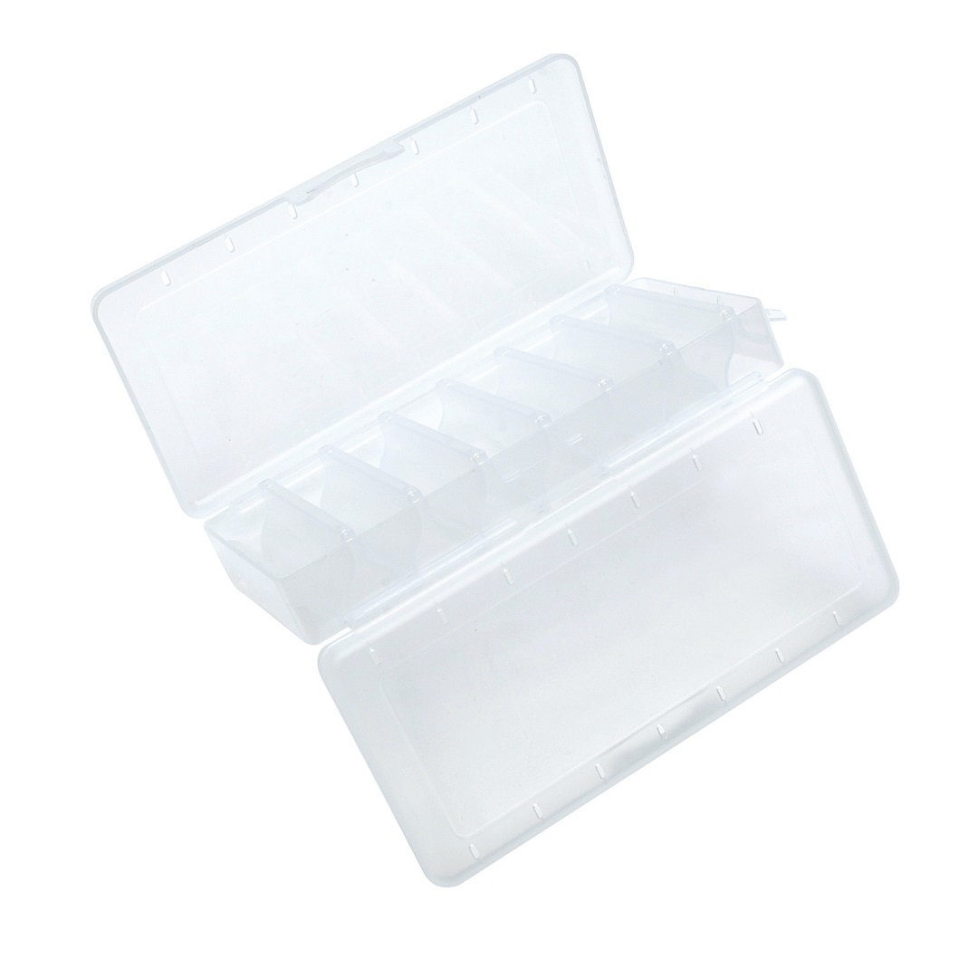 Valmistettu jiginkestävästä joustavasta muoviseoksesta. 187 x 90 x 35mm, 14 lokeroa.
