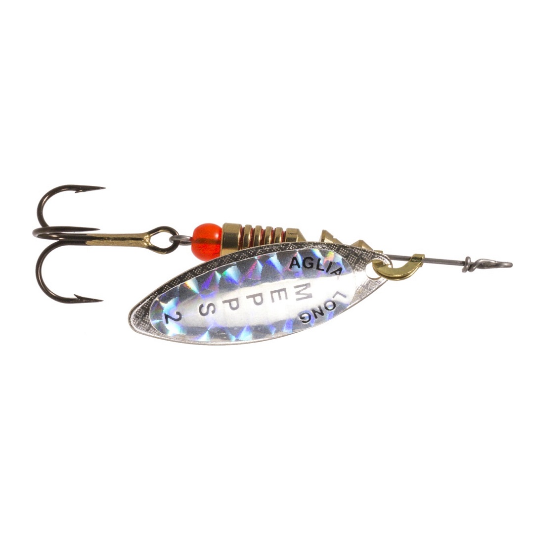 Mepps Aglia Long - veteen muodostuva värinä ja visuaalinen kuva muuttuvat nopeasti ja katkeavat hetkeksi. Hitaassakin kelauksessa nopeasti pyörivä pitkälehtinen lippa sopii erinomaisesti voimakkaasti virtaaviin vesiin. Hidas liike viehättää erityisesti passiivisia, pohjassa makaavia petokaloja, sillä ne eivät kovinkaan usein iske nopeasti liikkuviin vieheisiin.