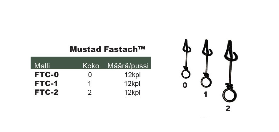 Mustad Fastach viehelukko johon viehe pujotetaan lukkoa avaamatta.