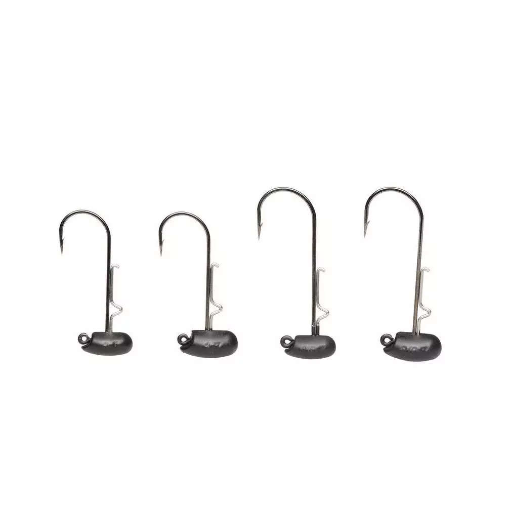 Tarkasti muotoiltu Ned-jigipäämallisto, jonka koot sopivat pienille ja keskikokoisille pehmovieheille. Pään muoto saa vieheen seisomaan pystyasennossa pohjalla ja mahdollistaa sen hitaasti raahaamisen sekä tauot, jotka houkuttelevat nälkäiset petokalat iskemään voimakkaasti. Jigipäissä on erittäin terävät, taotut korkeahiiliteräksiset koukut nano-kärjillä ja mikroväkäsillä. Jokainen koukkukoko on suunniteltu huolellisesti optimaalisen lujuuden ja tunkeutumiskyvyn saavuttamiseksi. Ruostumattomasta teräksestä valmistettu rungonpidike sisältää myös Pro Peg -silmukan ja väkäsen, jotka varmistavat vieheen pysymisen paikallaan.