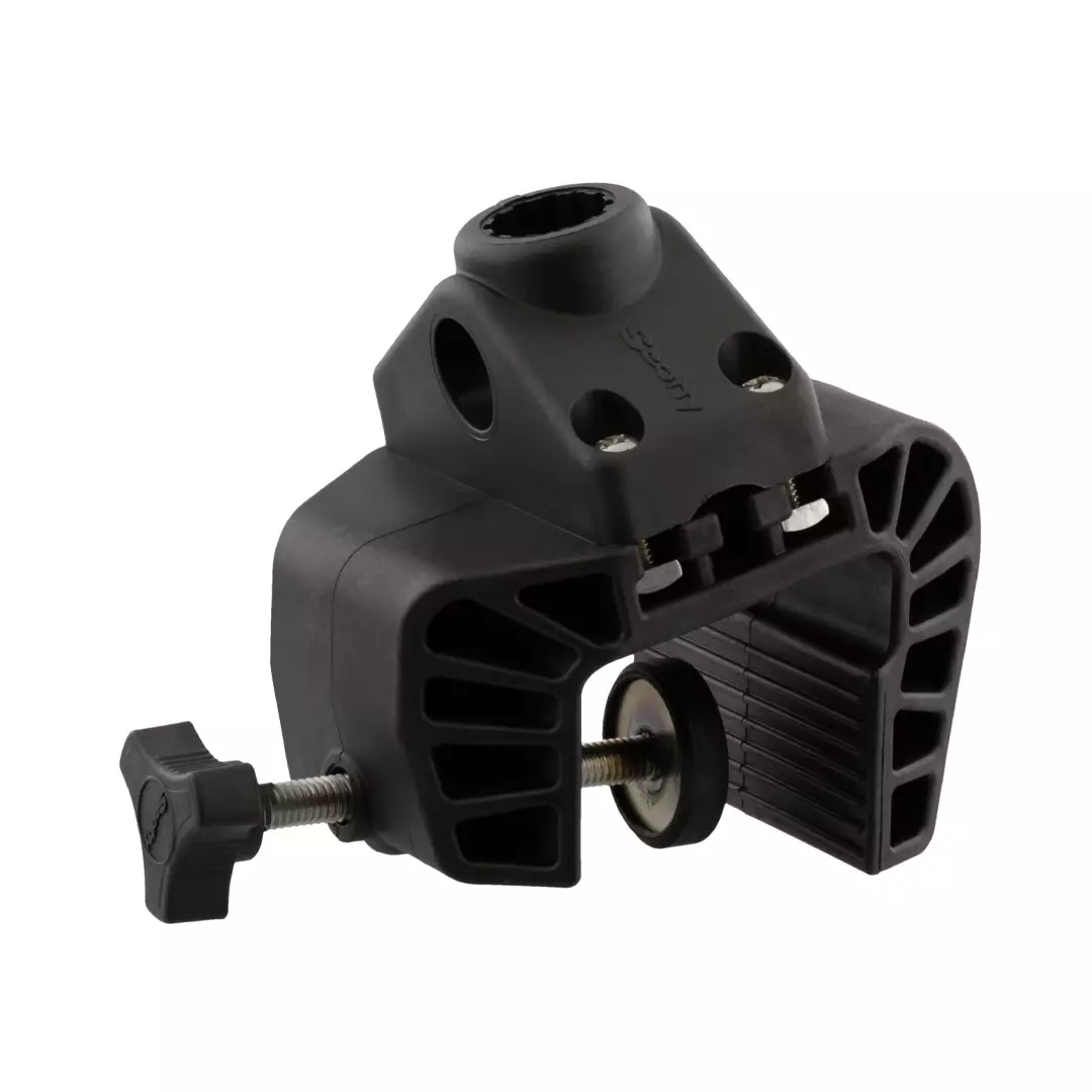 Näppärä laitaan kiristimellä kiinnitettävä jalusta Scotty vapatelineille ja esimerkiksi ankkuriköyden lukolle. Alustan kiinnityksessä molemmin päin kiinnitys mahdollisuus vapatelineelle.