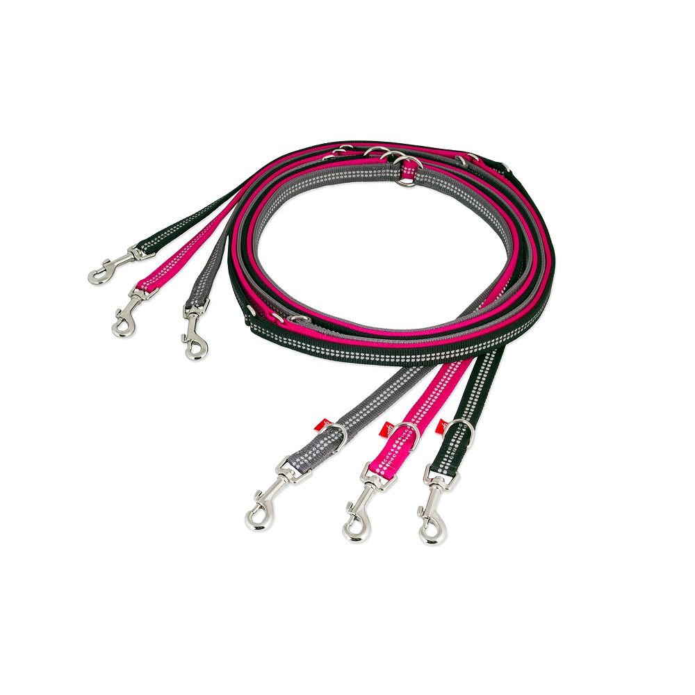 Heijastimella varustettu koirantalutin, joka on likaa hylkivää materiaalia. Monitoimitalutin on pituudeltaan 3 metriä ja leveydeltään 20mm tai 30mm. Talutushihnassa oleva pitkä heijastinnauha tuo näkyvyyttä ulkoiluun ja pimeällä lenkkeilyyn. Pikakäyttöisen lukon ansiosta koiranhihna on helppo kiinnittää kaulapantaan.
