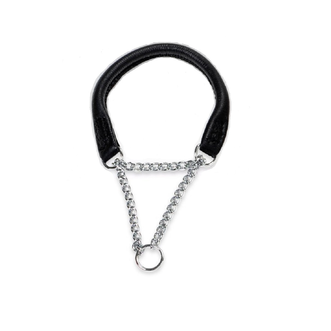 Nordkapp pyöreä&pehmeä musta nahkapanta, läpimitta noin 13 mm. Sisällä köysivahvike, ketjujen kiinnityskohdat varmistettu vahvikenauhalla ja kaksinkertaisella ompelulla.