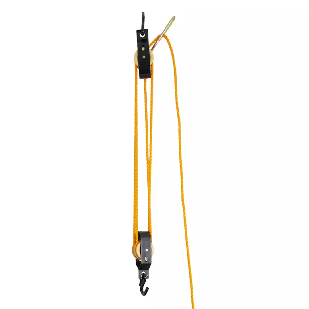 Talja automaattisella lukituksella. Helpottaa esimerkiksi ruhon nostamista ylös nylkemistä varten.