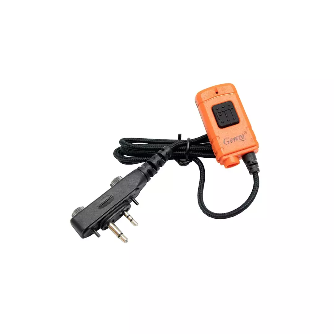 Käytännöllinen Genzo Kombi PTT -yksikkö erityisen kestävillä kangaskaapeleilla. Voidaan yhdistää eri kuulokkeiden tai kuulosuojainten liitäntäkaapeleiden kanssa. Kulmaliitin -E- ruuviliitännällä.