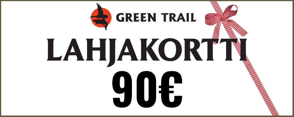 Erinomainen idea vaikka lahjaksi, Green Trailin Verkkokaupan lahjakortti. Tilaamalla tämän tuotteen saat sähköpostiisi koodin, jonka voit käyttää tilausta tehdessäsi syöttämällä koodin kohtaan "kampanja- tai alennuskoodi". Lahjakortit ovat voimassa 6kk ostopäivästä lähtien.