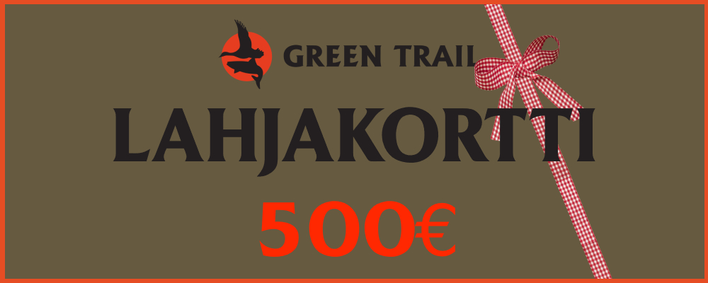 Lahjakortti Arvo 500€ (Käytettävä myymälässä) erinomainen idea vaikka lahjaksi, Green Trailin lahjakortti. Tilaamalla tämän tuotteen saat fyysisen lahjakortin joka toimitetaan Matkahuollolla. Lahjakorttiin ei tule nimiä, joten se on helppo antaa vaikka ystävälle tai sukulaiselle. Lahjakortit ovat voimassa 6kk ostopäivästä lähtien.