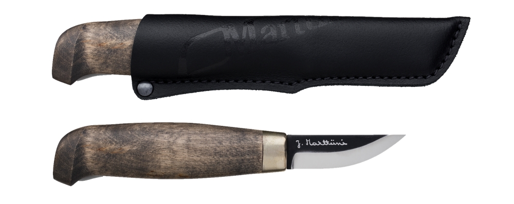 Marttiini Näpsä on näppärä lyhytteräinen puukko vuolemiseen ja askarteluun. Hiiliteräksinen terä on helppo teroittaa. Vahattu koivukahva antaa pitävän otteen myös märkänä.