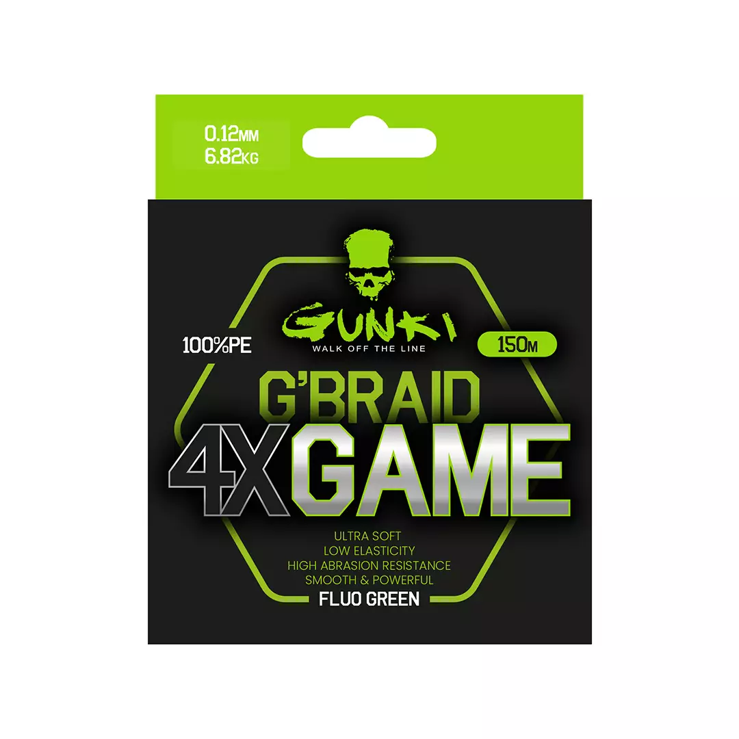 Gunki G'BRAID 4X GAME- kuitusiima on valmistettu tiheästi punotuista PE-kuiduista, joka takaa sinulle vertaansa vailla olevan vetolujuuden ja hankauskestävyyden!