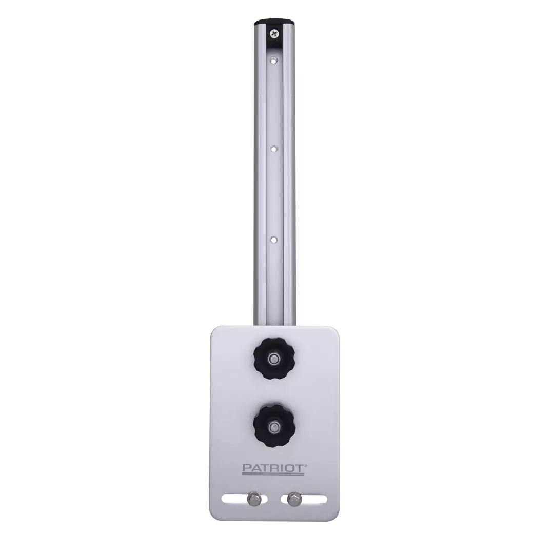 Patriot ProLift anturihissin kiinnityslevyssä on valmis ura ja kiinnityspultit, johon sopii suurin osa eri kaikuluotainvalmistajien peräpeiliantureista. Jos anturikiinnikkeen reikäjako ei osu valmiiseen uraan, voidaan alumiinilevyyn helposti tehdä myös lisäreikiä. Anturihissi kiinnitetään tukevasti veneen peräpeiliin ruuvien ja silikonimassan avulla (ei sisälly pakkaukseen).