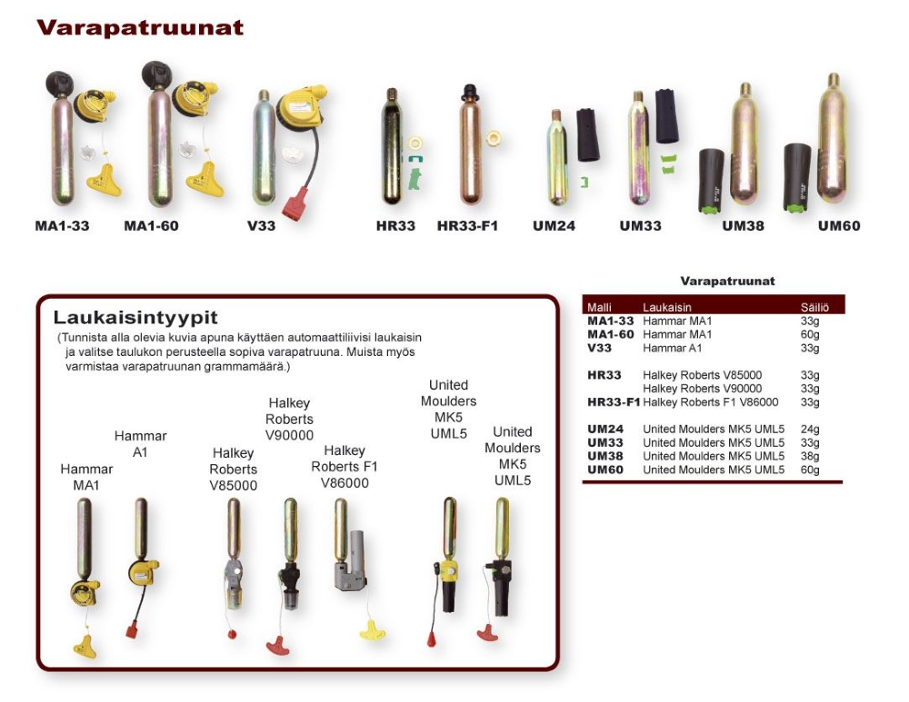 - Varapatruuna ja laukaisin paukkuliiveihin.